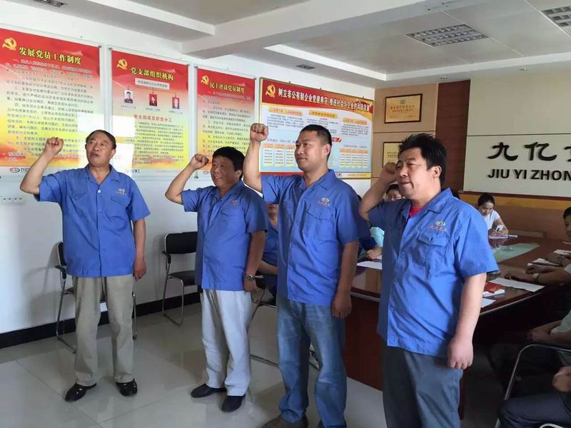 2015年7月1日:今天是中國***黨94歲的生日:洛陽九億重工集團(tuán)有限公司黨支部為3名新黨員舉行入黨儀式:宣誓入黨誓詞;黨的事業(yè)后繼有人!